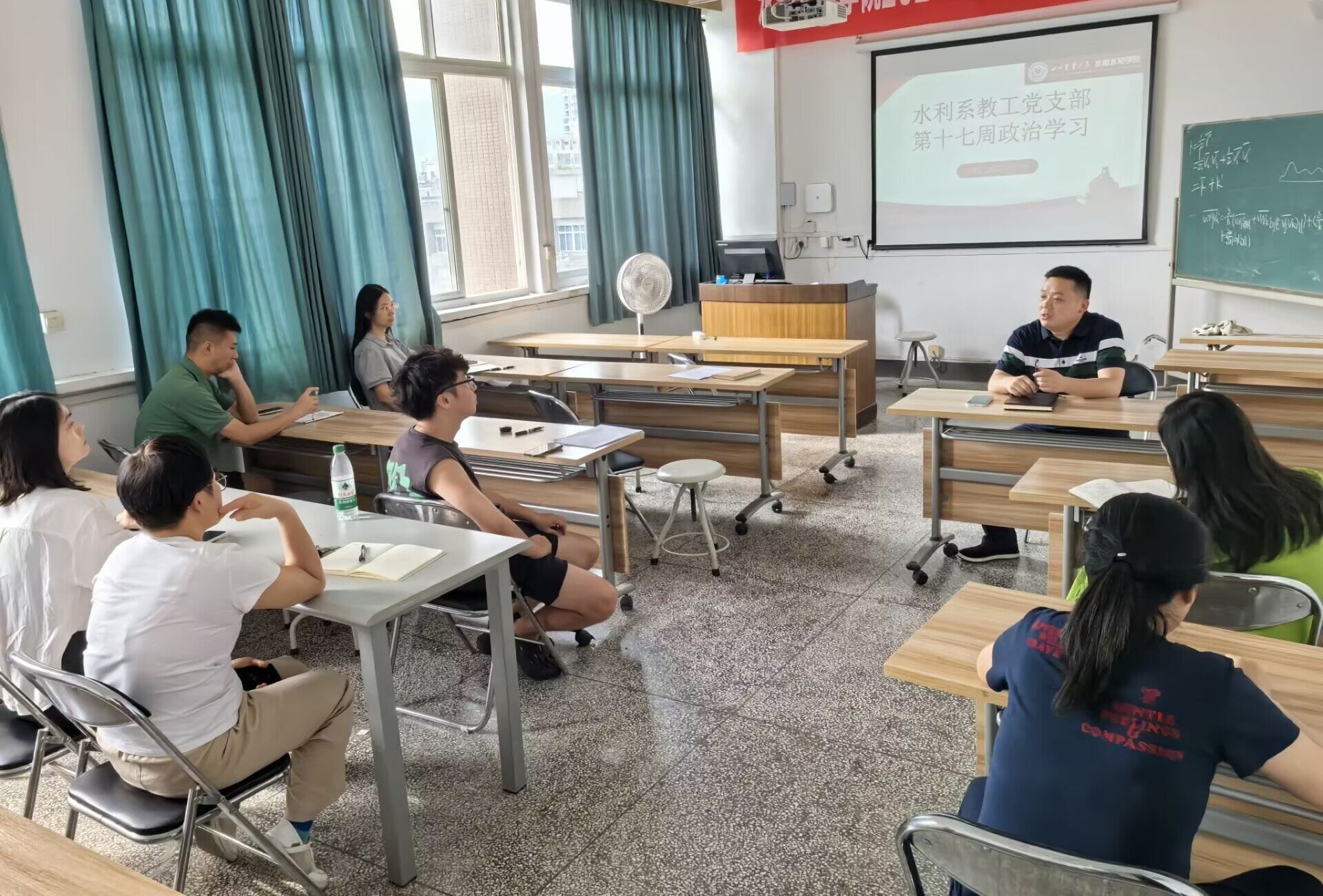 课上,学院党委书记马海、院长曹迎、学院副院长、党委副书记胡建聚焦“深化作风建设,践行育人使命”主题,重点领学了中央党的建设工作领导小组《关于集中整治违规吃喝的通知》和《求是》杂志刊发的习近平总书记《锲而不舍落实中央八项规定精神 以优良党风引领社风民风》重要文章,系统解读中央八项规定精神的核心要义,列举河南信阳原政法委常务副书记业金广培训期间违规吃喝、湖北省黄冈市黄梅县有关党员干部违规吃喝和安徽省安庆市宿松县千岭乡党政领导班子成员等违规吃喝问题案例,原文通报了党员干部违规吃喝严重违反中央八项规定精神典型问题。要求各师生党支部党员要提高政治站位,深入学习领会习近平总书记关于加强党的作风建设的重要论述,深刻认识违规吃喝的政治危害,明确整治违规吃喝的重点任务,用“身边事教育身边人,让党员、干部受警醒、知敬畏、守底线。