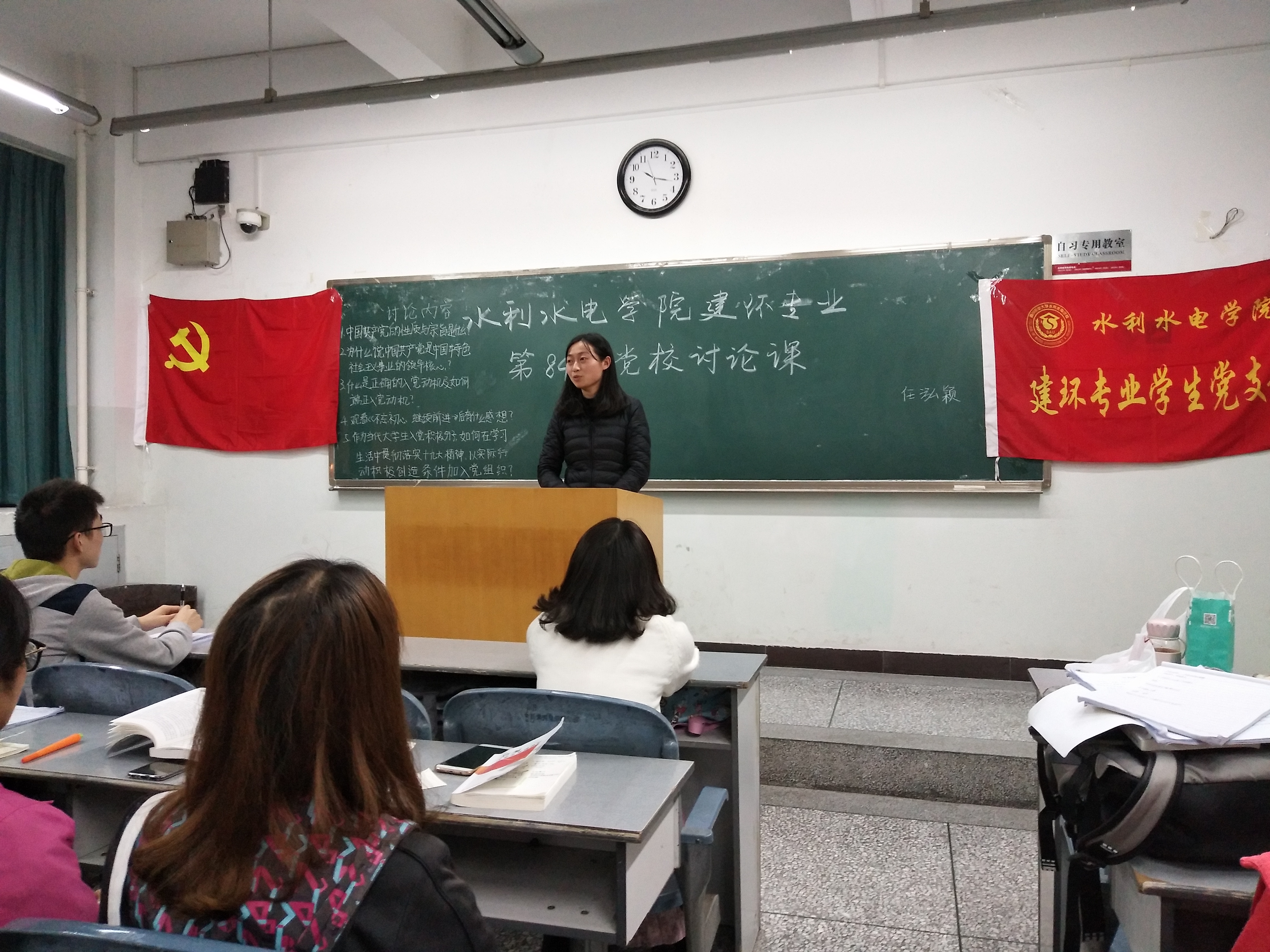 为促进学院第84期党校学员交流分享理论学习成果,并深入学习和领会十九大精神,11月8日晚,水利水电学院分专业在十教A617、A615、A609开展第84期党校讨论课。学院党委书记曾小波,党委办公室副主任、团委副书记杨丽萍,党委办公室老师彭小芮对各专业讨论课进行指导,各专业学生党支部书记以及本期入党积极分子参加讨论。
