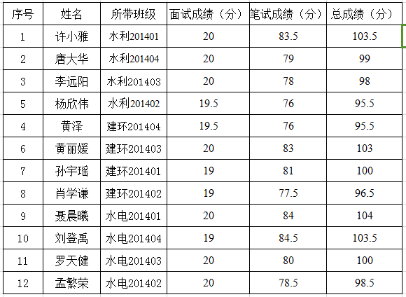 经学生本人申请、学院笔试、面试综合考察,预招募以下同学为2014级新生班班主任助理。现将名单公示如下,公示期为2014年7月3日—7月5日,如有异议,请本人到4教615室当面反映。
