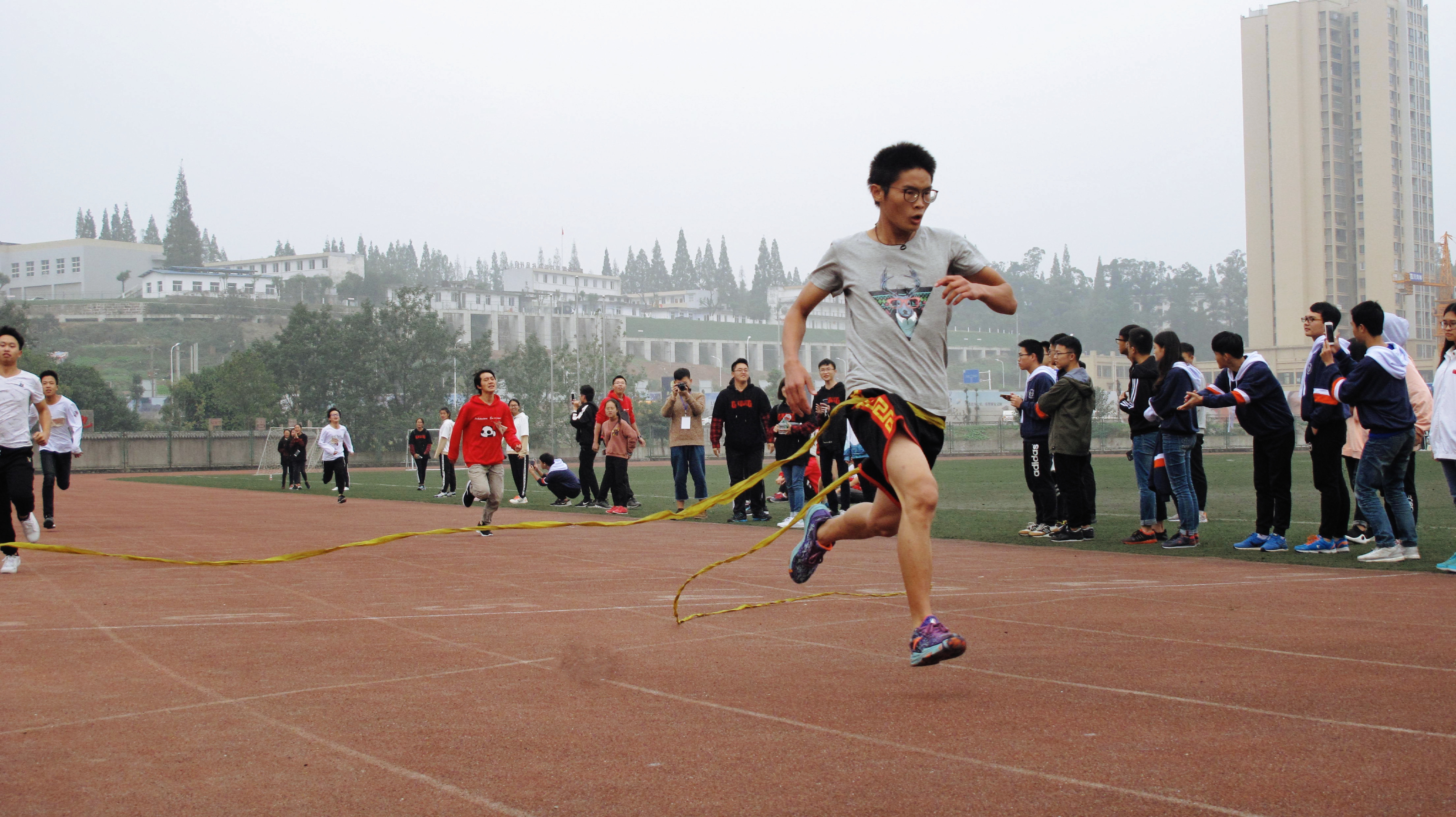 行走在运动场上,身旁飞闪过道道人影,同学们涨红着脸为运动员加油助威,操场上空回旋着同学们的呐喊声;广播里传来的一篇篇热情洋溢的加油稿也激励着运动员们不断超越自我、勇往直前;就连老师们也被深深感染,一同加油鼓劲。运动员们为了争取班级荣誉,为了不辜负同学们的期望,无不竭尽全力、奔赴终点,用激情诠释运动,用汗水映证青春。最后,经过一天精彩激烈的角逐,水电2班、水利2班、水电5班分别获得团体总分冠、亚、季军。