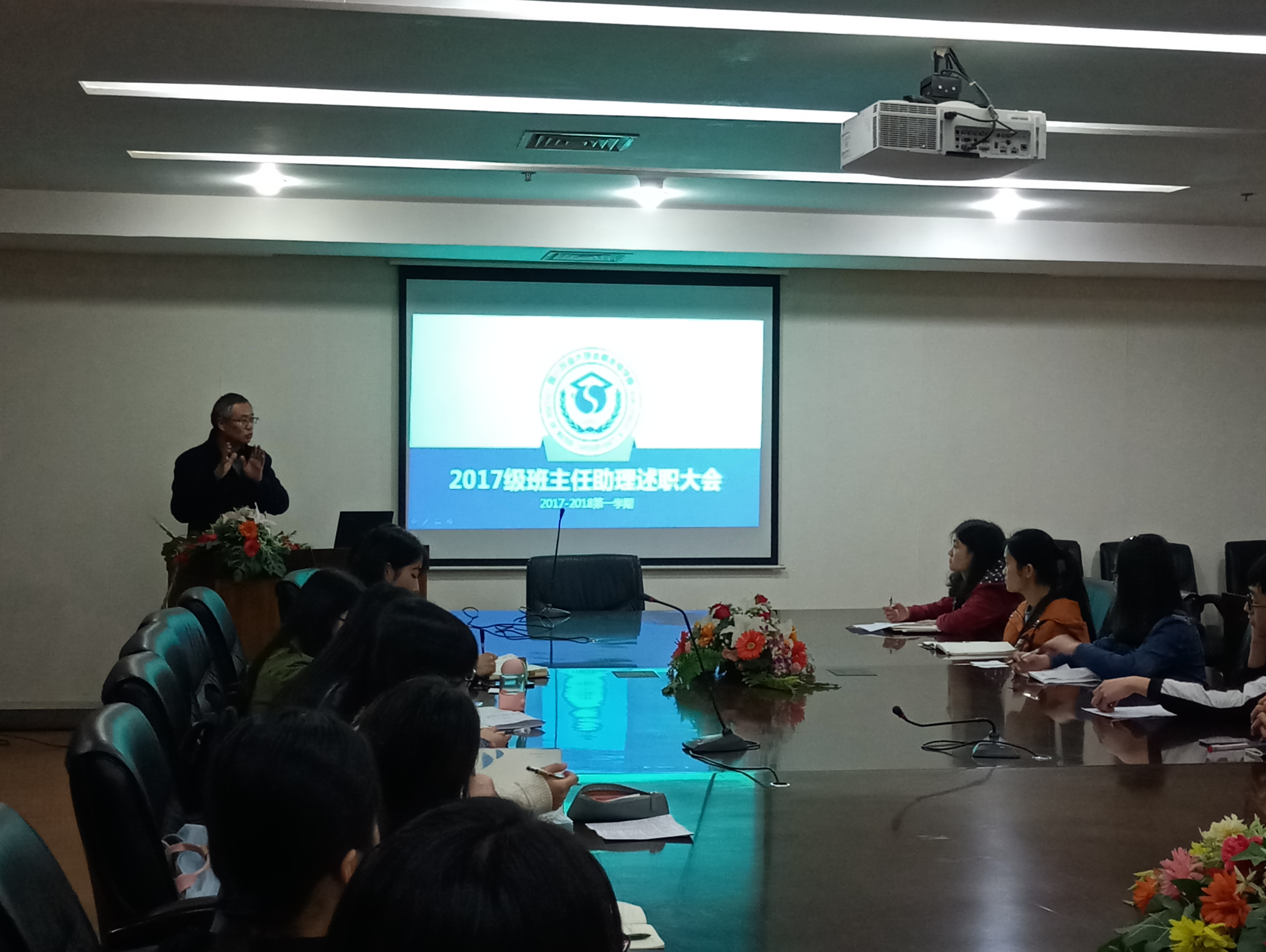 3月30日,学院于综合楼314会议室召开了2017-2018学年第一学期2017级班主任助理述职报告会,并在会上开展“优秀班主任助理”的评定。学院党委书记曾小波、党委办公室副主任杨丽萍、党委办公室老师彭小芮,以及2017级各小班班主任助理、部分2017级各小班代表参加本次报告会。