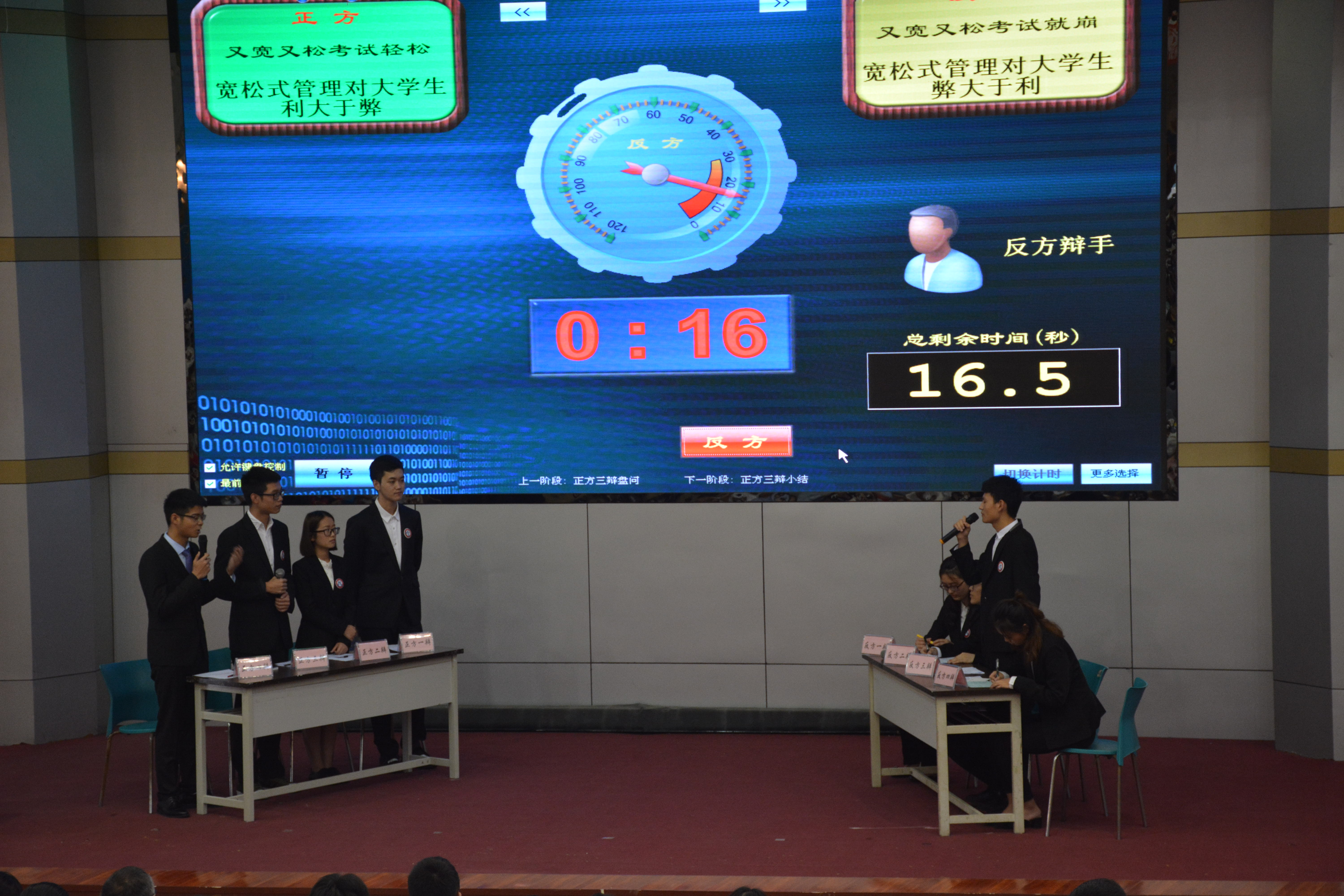 此次辩论表演赛由水利水电学院辩论队主办,在观看了一段学院辩论队简介VCR后,表演赛正式拉开了帷幕。双方辩手分别对“宽松式管理对于大学生利大于弊还是弊大于利”这个辩题展开了激烈的讨论,双方你来我往,唇枪舌剑。比赛中,辩手向同学们展现了宽松式管理的两面性,希望每一位新生都能够在大学中学会自律,理性对待宽松式管理。在比赛结束后的提问环节,新生们都积极提问,辩手们也耐心地进行了解答,现场气氛达到高潮。