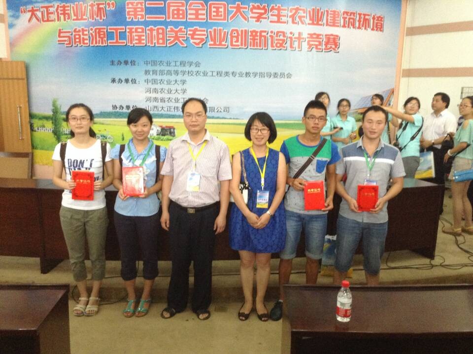 水利水电学院农业建筑环境与能源工程系提前组织本专业学生,经过大量实践练习和专业技能预选赛,最终遴选出周曼老师指导的《农业院校餐厨垃圾处理生产沼气集成化系统设计》和胡建老师指导的《南方“五位一体”美丽乡村生态住宅设计》两件作品参加本次大赛。经过模型展示,设计介绍,专家问辩等环节的比拼和交流,我校由周曼老师指导的4名学生组成的代表队经过激烈角逐,荣获二等奖。