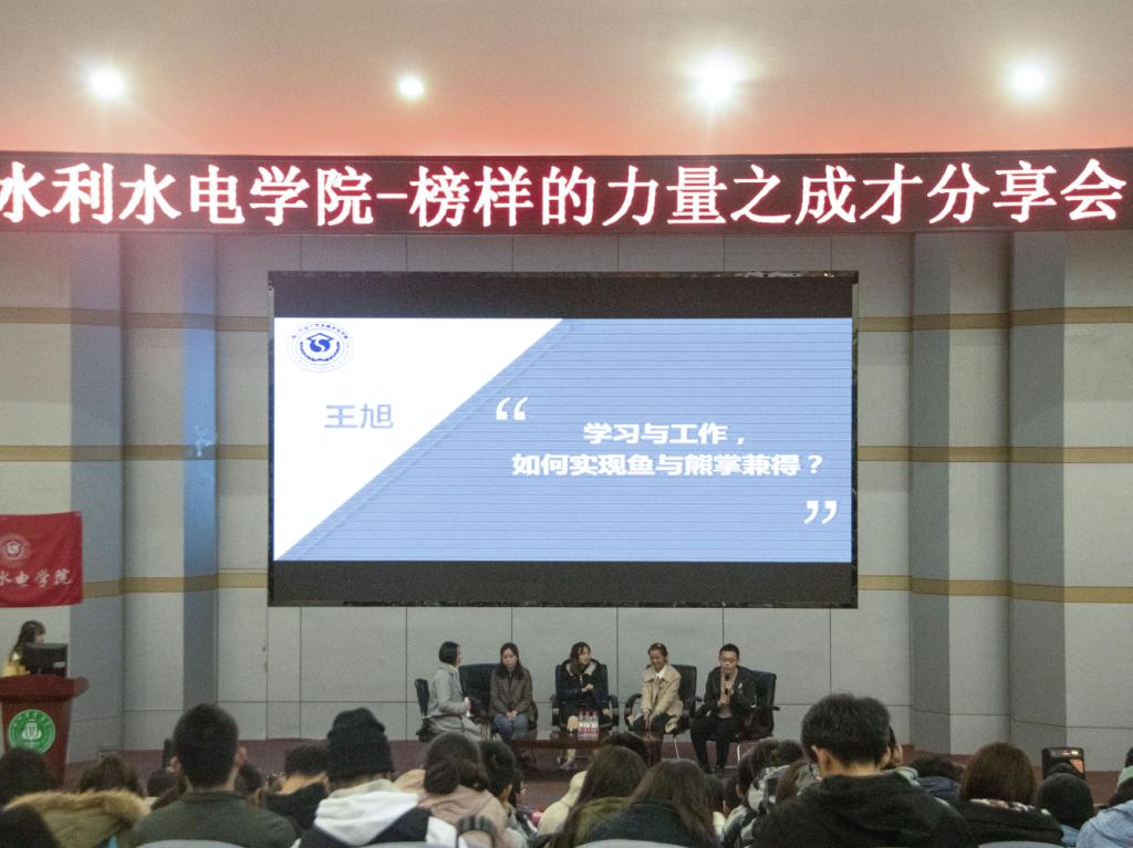 为帮助同学们明确目标,树立榜样,11月22日下午,水利水电学院于逸夫楼小礼堂召开榜样的力量之成才分享会。本次活动特别邀请了水利水电学院刘啸宇、邓琳、王旭、刘雨佳四位嘉宾,前来为同学们分享答疑。