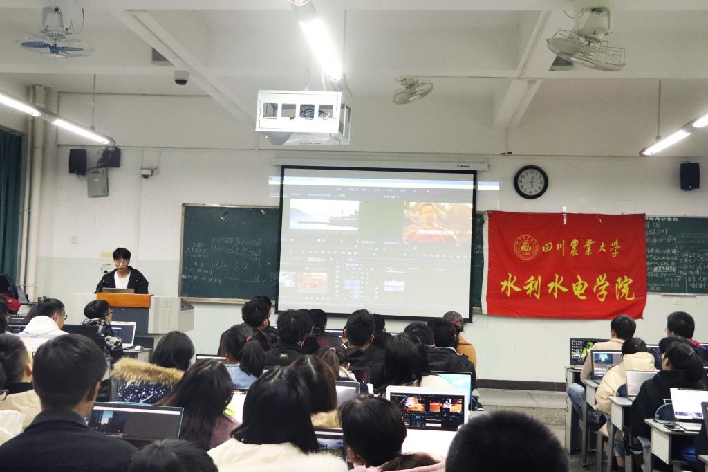 何思丝结合自身经验,对海报设计软件“创客贴”的使用进行了细致的讲解,在模板的调用、主题的设计、素材的选择以及如何导出图片成品等方面都进行了详尽的演示,解答了同学们提出的有关实际操作方面一些的问题,并强调了创客贴在学生工作中的实用性和重要性,鼓励大家积极自主学习,最后以“新中国成立70周年”作为主题布置了作业。任逸为大家讲解了视频制作软件PR的基本使用方法,包括素材的导入、视频效果的添加、如何加入字幕和怎样导出视频,帮助同学们掌握了视频制作的基础方法。