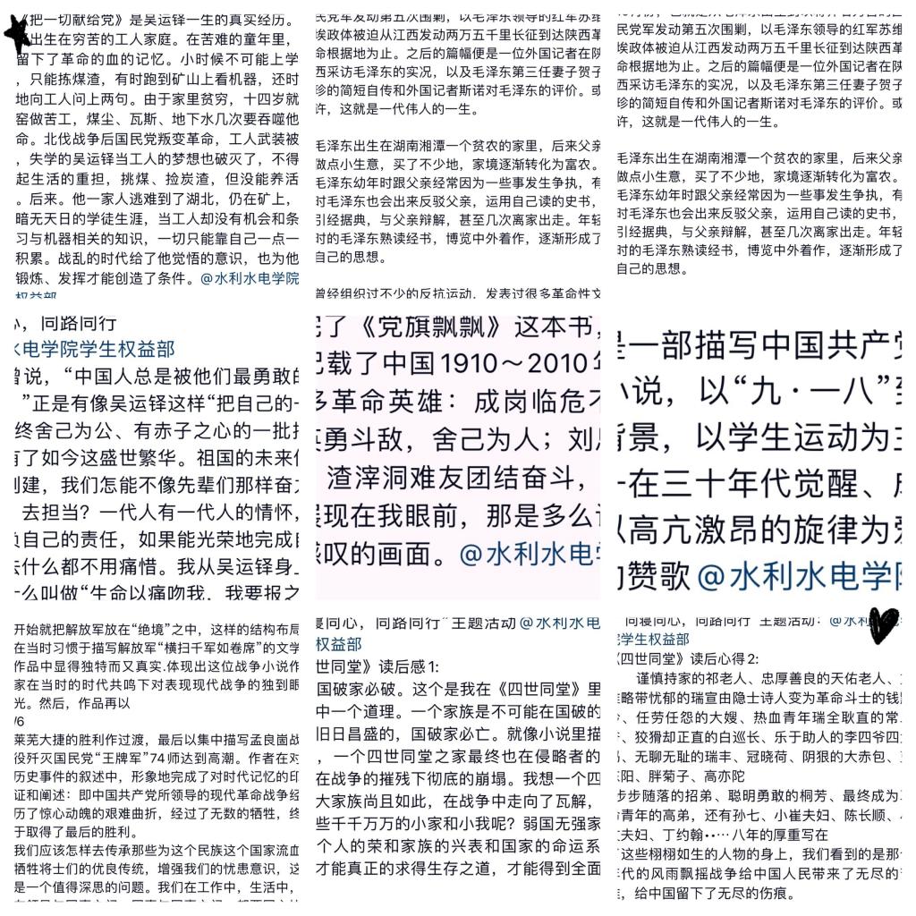 为传承红色基因,深化党史教育学习,引领学院新生一代在学习中,发扬革命传统、赓续红色血脉,并从中汲取前行的力量。水利水电学院权益部面向学院2021级各小班开展了“同寝同心,同路同行”之思想前进活动。