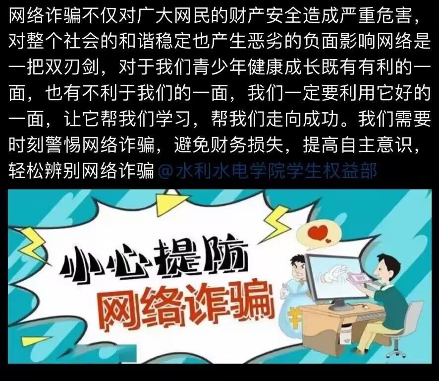 活动前期,通过i川农、学院官方平台等多方途径进行了广泛宣传,激发了学生的学习意识和打卡兴趣,纷纷加入活动答疑群,通过平台进行活动报名。进入打卡阶段,部门成员每天都将精心挑选的反诈骗视频分享在答疑群中,共持续12天。视频中详细介绍了“双十一”期间一些常见的诈骗手段,并为同学们讲解了遭受诈骗后如何利用法律武器维护自己的权益。同学们将自己观看视频的观后感发布在QQ空间中,累计打卡十天即视为成功,最终打卡成功率超过75%。通过对视频的深入思考和心得撰写,有效地提高了大家对“双十一”诈骗的警惕性,加强了同学们对维权相关法律知识的了解,让同学们懂得如何维护自身消费权益。