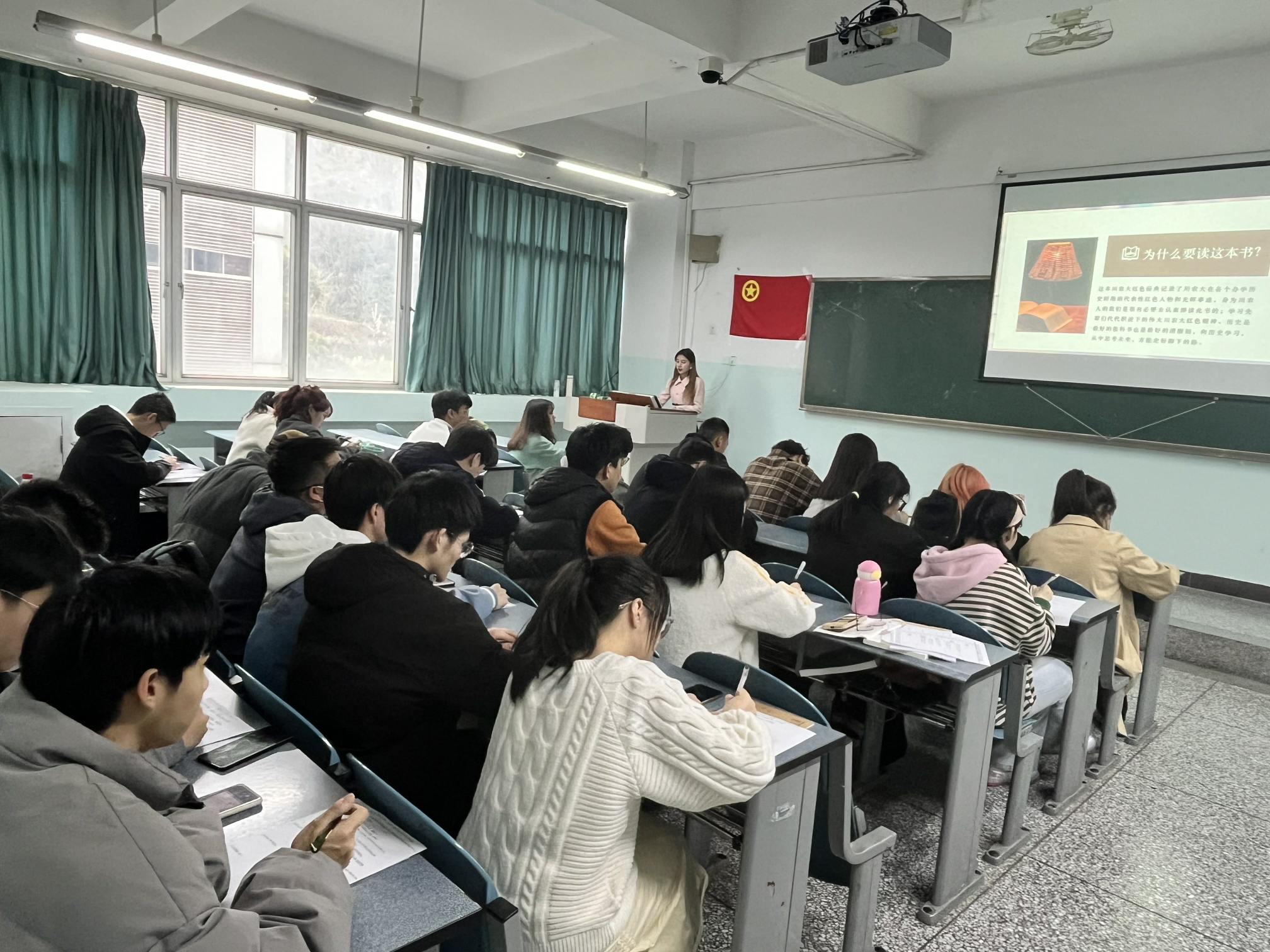 文字芳菲,书香致远。伴随着先辈的革命岁月,为更好地传承红色革命精神,追寻红色记忆,赓续精神血脉,培养同学们的爱国主义情怀。3月7日下午,学院团委第七期“青马工程”精进班读书分享会于十教A-408开展。本次分享会由团委学生兼职副书记张静主持,主席团成员陈柃旺、青马班全体成员参加此次分享会。