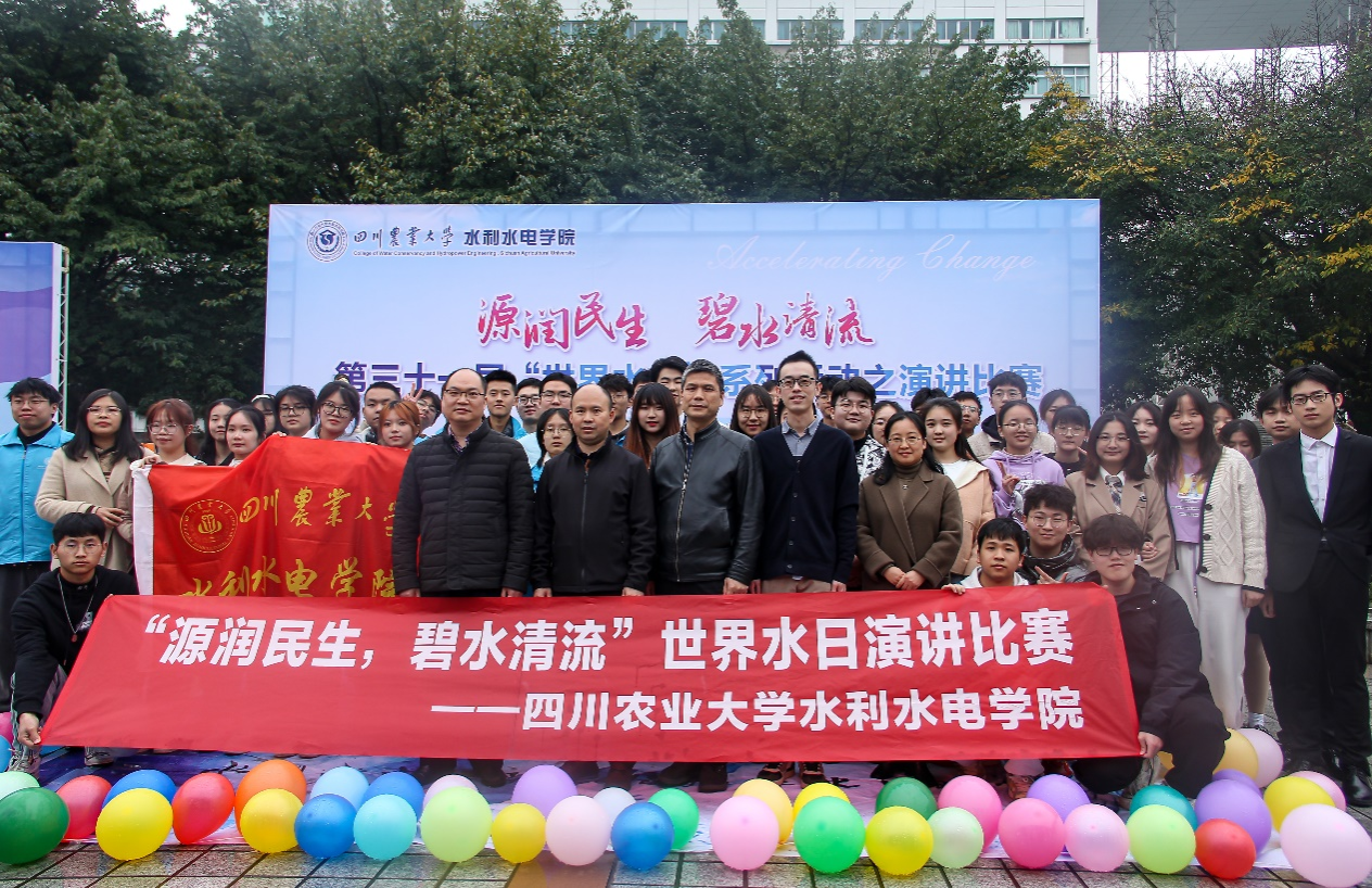 为响应国家号召,增强节水意识,加强水资源保护, 3月26日下午,由水利水电学院团委创新创业服务部、学生会学习学术部联合举办的“源润民生,碧水清流”主题演讲比赛在十教水池前圆满落幕。雅安市水利局科长胡杨武、一级科员牟麒霖,学院副院长胡建、卢修元,学院行政办主任鲁妮、党委办主任李建华出席本次比赛并担任评委嘉宾。