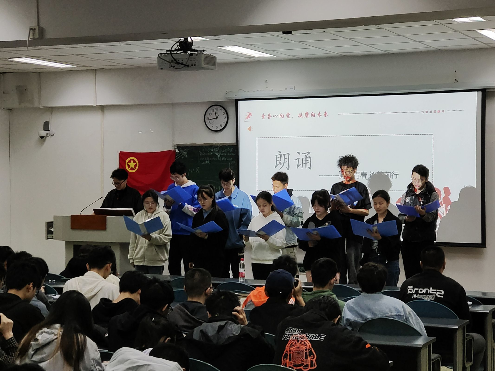 历史是什么:“是过去传到将来的回声,是将来对过去的反映。”人们经历过的一切,都会留下不可磨灭的印记。过去的一切,成就了现在;现在的一切,也将成就未来。铭记是为了更好地前行。在“忆往昔峥嵘岁月”环节的配音表演中“日本人在全世界面前偷了山东,山东人民该不该愤怒,四万万中国人民该不该愤怒!”如今闻此,依旧是如此振聋发聩。同学们情真意切的将如朝阳般喷薄欲发的中国青年的愤怒表演的淋漓尽致。同学们还一起回顾了五四青年的历史由来及其历史意义并观看了校团委精品团课。为巩固所学,加深同学们对五四精神的学习,活动设计了知识问答环节,同学们踊跃回答,积极响应。该环节院青马学员王依琳还为团员青年们详细讲解了五四精神的传承与实践。