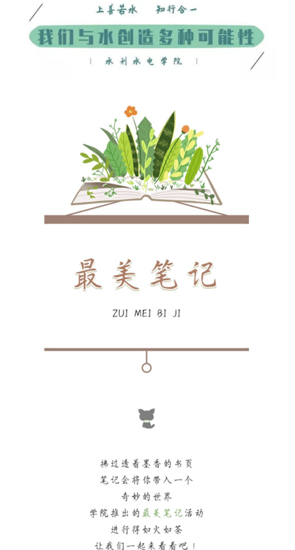 古人有云:“观书有会意处,题其衣裳,以记其事”,为调动学生记录课堂所学知识的积极性、培养学生的归纳整理能力,学院学生会学习学术部于4月下旬到5月初举办了“记书本之华,寻万物之美”最美笔记评选活动,累计参与活动同学600+。