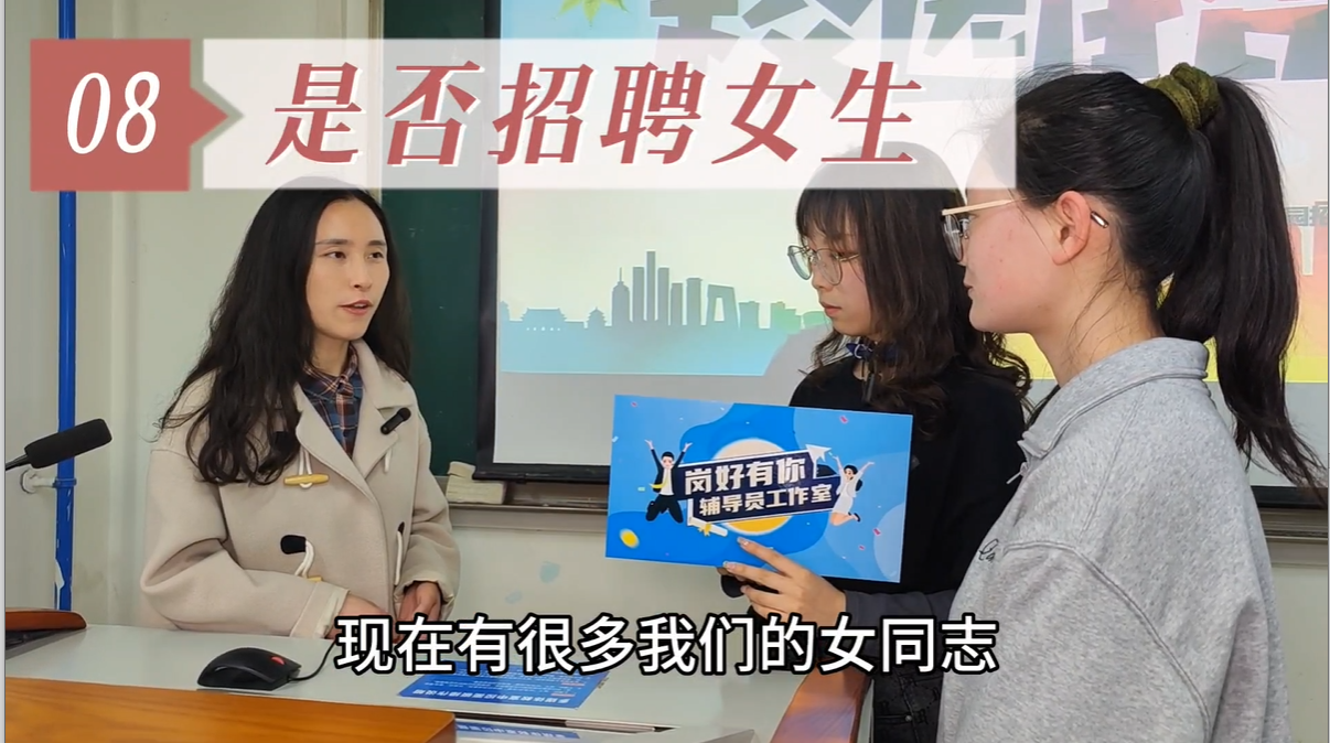“岗好有你”辅导员工作室设计专属logo,通过企业、岗位筛选,将优质岗位分类讲解,聚焦岗位发展前景、岗位及专业需求、薪酬福利、晋升通道、工作地点、简历投递方式等,以云游及访谈的方式进行微视频拍摄制作,提高对学生的吸引力,提升毕业生对企业岗位的认识,增强就业信心,营造浓郁就业氛围。