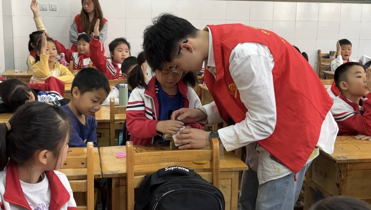 主讲人从走进水、认识水、理解水三个方面为小朋友们带来了一节生动的水知识课堂。其中主讲人就水的分布、与水有关的有趣知识、水对人类的重要性等三个方面进行了详细介绍。“讲课过程中小朋友们全神贯注地听讲,积极举手回答问题也让讲课过程中充满生气。”主讲志愿者吴思雨回忆道,“小朋友们如初生之日般的朝气,让我记忆深刻,将我所知道的知识传递给他们,我想这就是志愿服务活动的意义。”在理论课程讲解完毕之后,志愿者们指导着小朋友们进行了三个趣味水实验——有孔纸片托水杯、漂浮的针、会吸水的杯子,并在实验过后详细为他们介绍了各个实验的原理。面对有趣的小实验每位小朋友都争先恐后,随后在志愿者的帮助下每个小朋友都成功完成了实验,这让小朋友们也充满了自豪感。实验全部结束,志愿者希望小朋友们在课下也能继续探索世界,用新奇的眼光看待每一个问题。