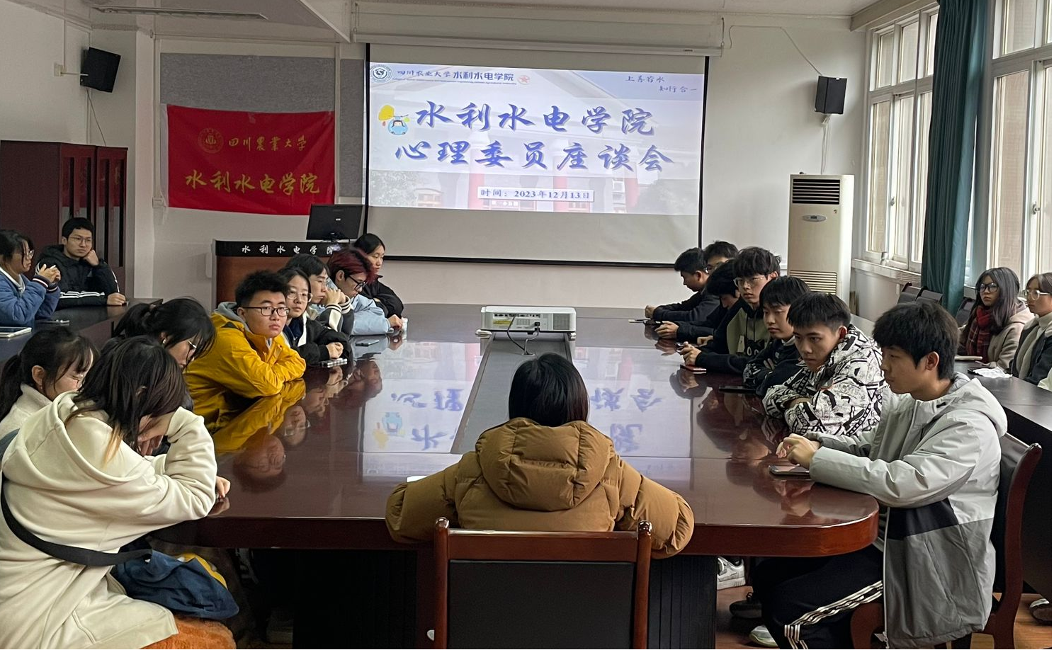 为明确班级心理委员的工作职责,规范心理健康教育的工作方法,进一步推动心理委员在班级心理健康工作中的作用,保障学院心理健康工作的顺利开展,12月13日中午学院于四教216召开心理委员座谈会,学院党委办公室副主任杨丽萍老师及21、22、23级全体心理委员参会。