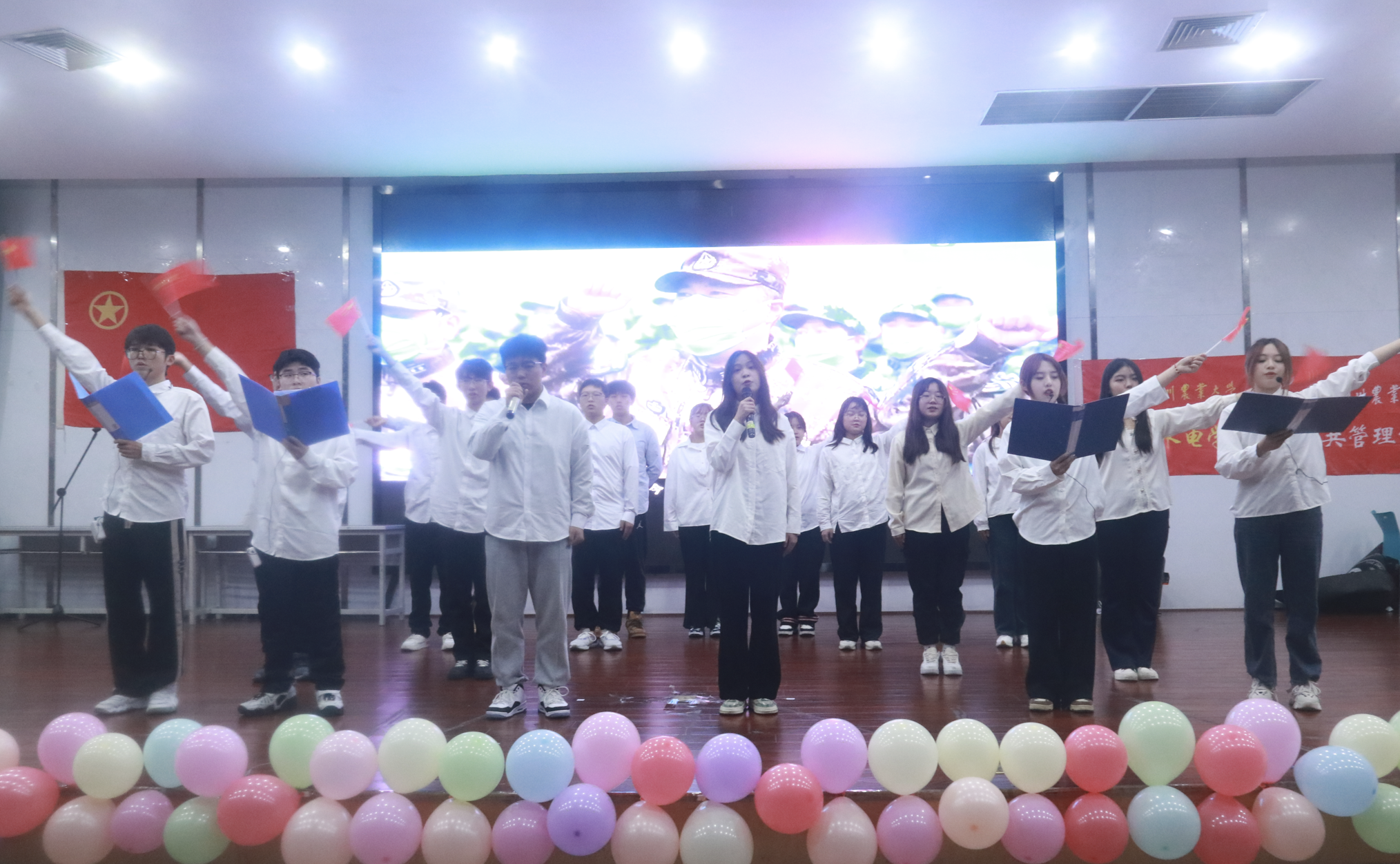 承八十八载辉煌汗青,展中华青年壮志激情,本次一二·九活动形式创新,朗诵、舞蹈、唱歌、合唱、幕布剧以及一二·九运动知识竞答多种形式辉相衬映,两院学子精彩节目纷呈不断,尽显青春风姿。活动在学校吉他协会弹唱中拉开序幕,跳动的音符顿时让现场观众沉浸其中,忆回往昔。紧接着,农发202301班同学带来朗诵舞蹈《高举“一二九”火炬·传承爱中华精神》,让爱国之志通过铿锵之音和韵味十足的舞蹈感染了现场每一个人。独具匠心的舞台剧、别出心裁的幕布剧、抒情的歌曲以及别开生面的话剧,活动进程愈发火热,高潮不断,现场的掌声经久不息。其中,水利202202班以“舞蹈+合唱”的方式演绎节目《我爱你中国》,歌声高昂,舞姿飘逸,更将在场观众思绪拉回到那个青春抗战、救国图存的纷飞时代;幕布剧《觉醒青年》凭借别出心裁的演出方式给在场观众留下深刻印象——只靠一张白色的幕布,水电202301班却用无声的动作演绎出慷慨激昂的革命青年之无畏精神,获得大家一致好评……