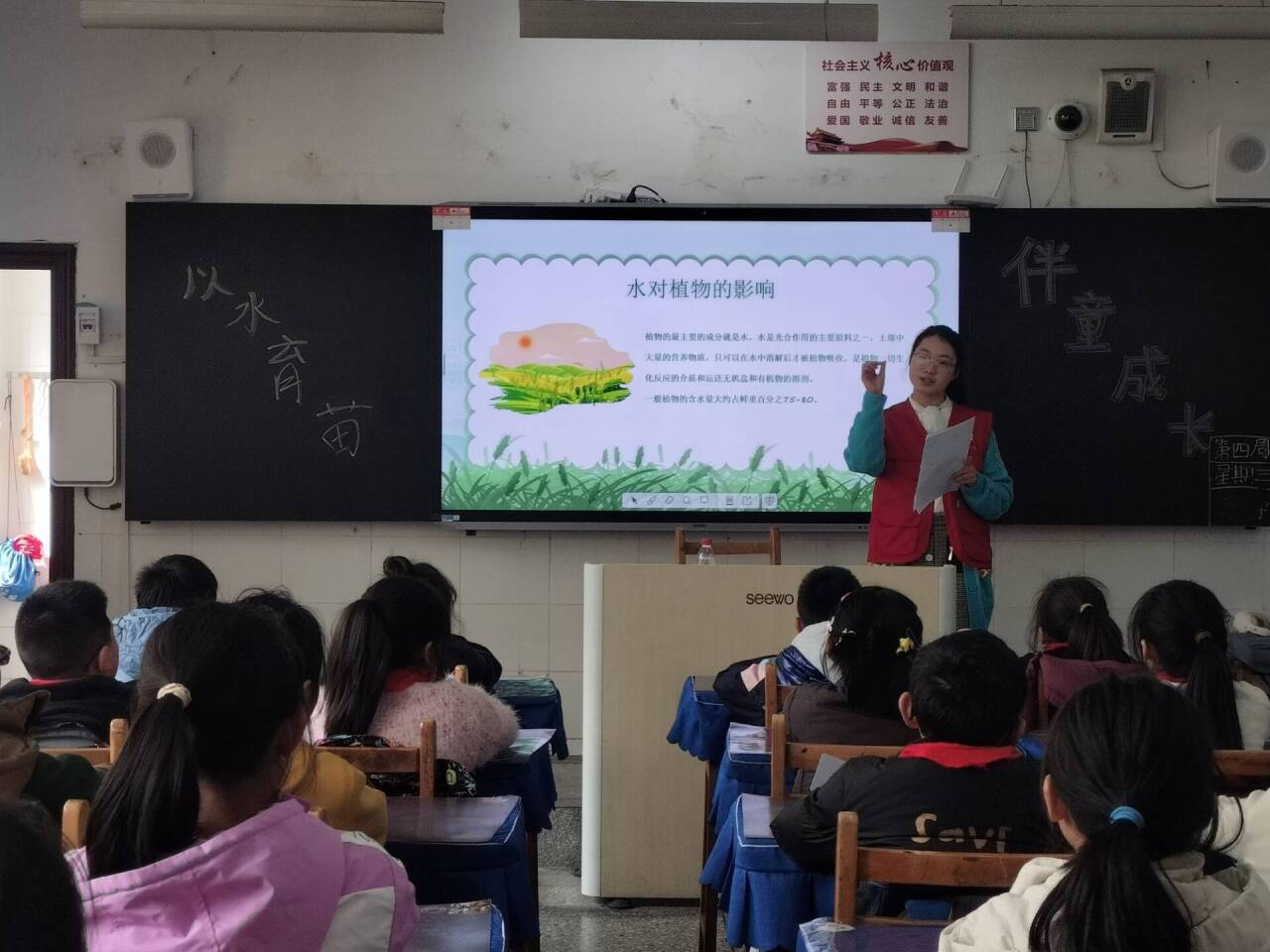 伴随课堂铃声的响起,本次志愿活动便正式开始。主讲志愿者杨艳秋针对不同植物需要不同量的水开展讲述。“如何让小朋友们更容易的理解水与植物的关系,如何把理论知识运用到实际,这是我讲课之前一直思考的点”,杨艳秋说道:“我将我养的向日葵带入了课堂,希望通过实例将知识生动形象的展现出来。”