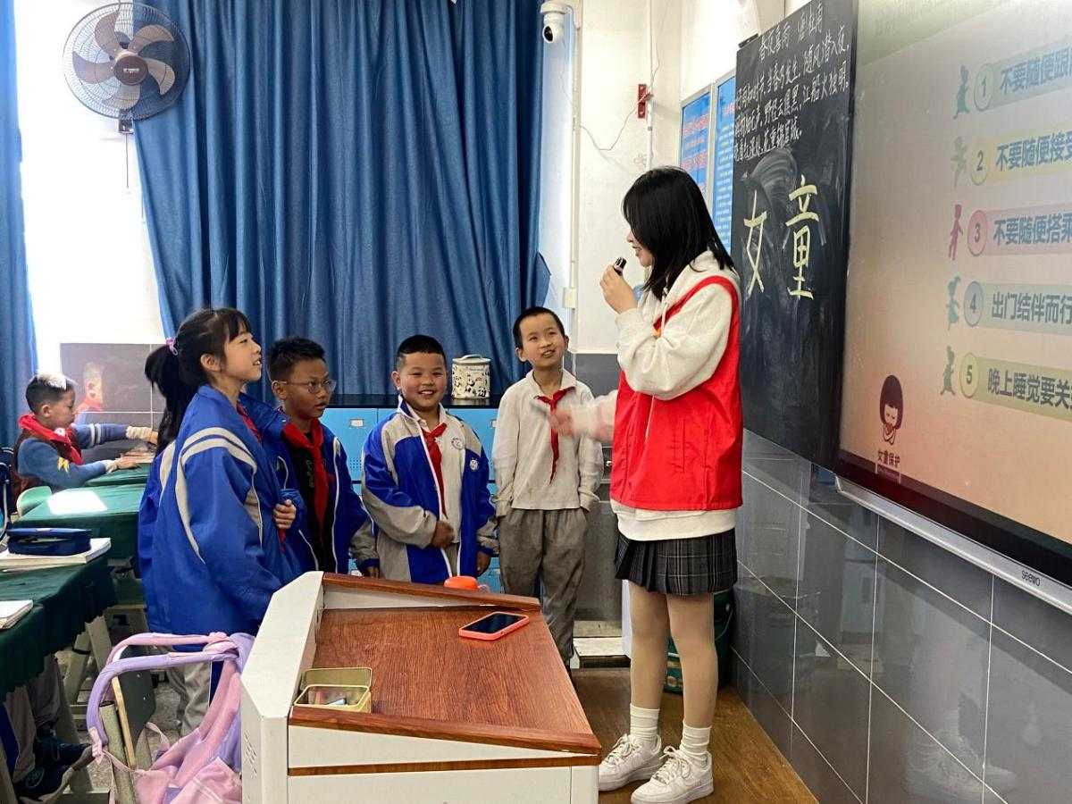 3月28日,为进一步普及、提高小朋友的自我保护意识,让小朋友远离性侵害,学院团委志工部组织6名青年志愿者前往雅安市雨城区第九小学开展“女童保护”活动。