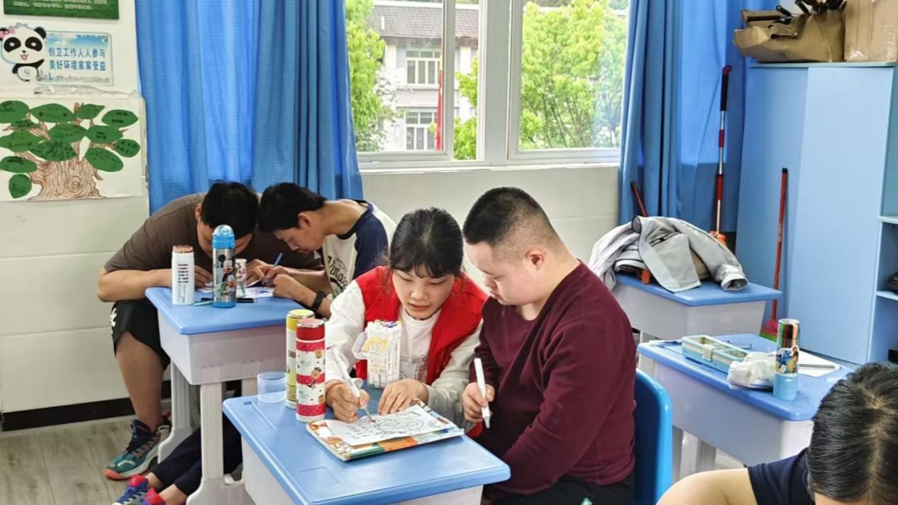走进学校,志愿者们就被孩子们的阳光明媚所感染。面对陌生的志愿者们,小朋友们并未害羞、逃避,而是落落大方,笑嘻嘻地喊着“哥哥”、“姐姐”。“我一直都没有机会接触他们,这次亲眼看到,我发现他们并没有多么特殊,反而更加出众”,志愿者倪秋灵感慨道。
