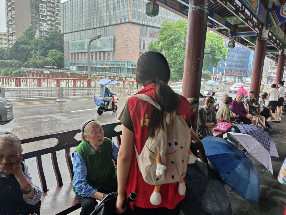 图为“心旅”团队志愿者们华兴街社区老人在廊桥接受心旅成员的采访。团队成员 钟诚子 供图