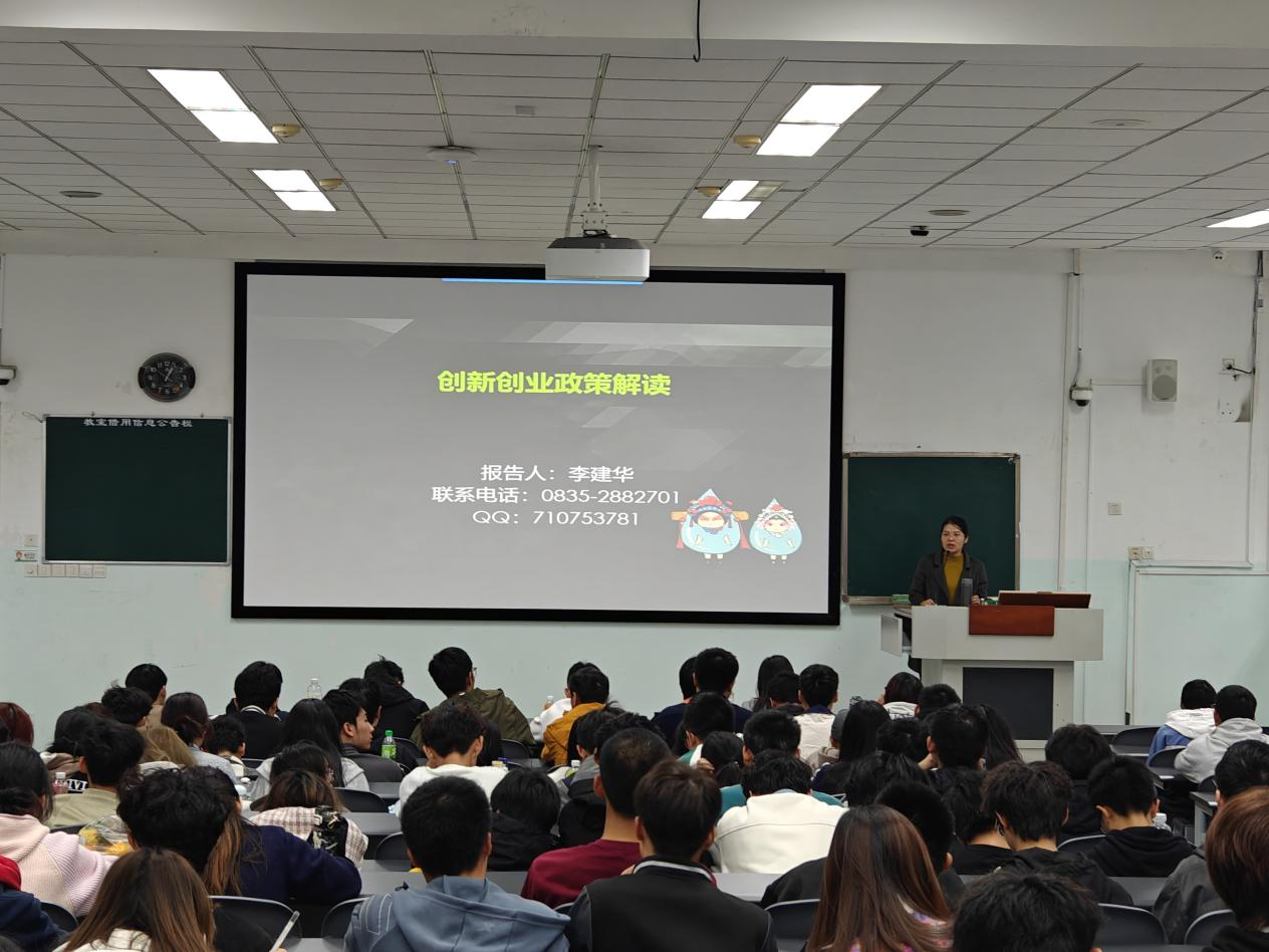 李建华就创新创业政策问题进行了解读,就大学生生涯中科研规划展开讲解,让同学们表达出自己的想法并一一解答,使同学们对自己的大学生活有了更明确的目标。