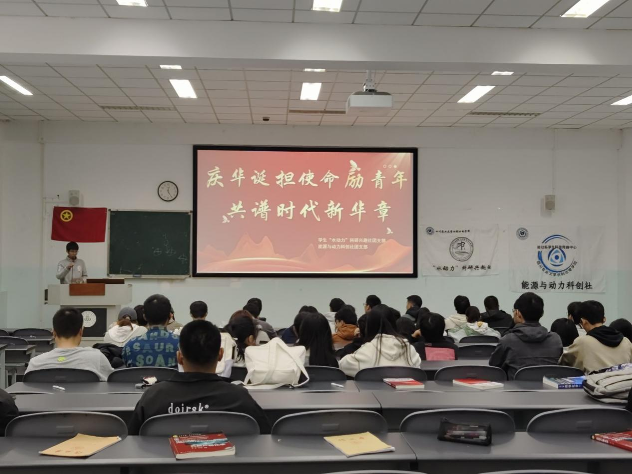 11月8日,学院学生“水动力”科研兴趣社与能动科创社团支部在10教B402联合开展“庆华诞、担使命、励青年,共谱时代新华章”主题班团活动,58名社团成员参与学习。