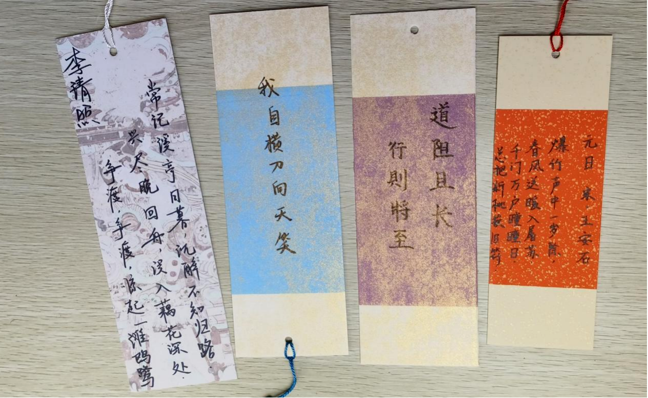 活动尾声,同学们在书签上留下他们喜欢的诗词,共同领略诗词的魅力,展现出独特的思考与情感。“希望下次还能举行这样的活动,这不仅感染了我们的内心,也让我们对传统文化更加充满信心!”同学们笑道。图书馆负责老师也对活动持高度赞扬:“此次合办活动氛围很积极,我们很开心看到大学生们如此喜爱诗词与传统文化,也期待同学们在传承中华文化中贡献青春力量。”