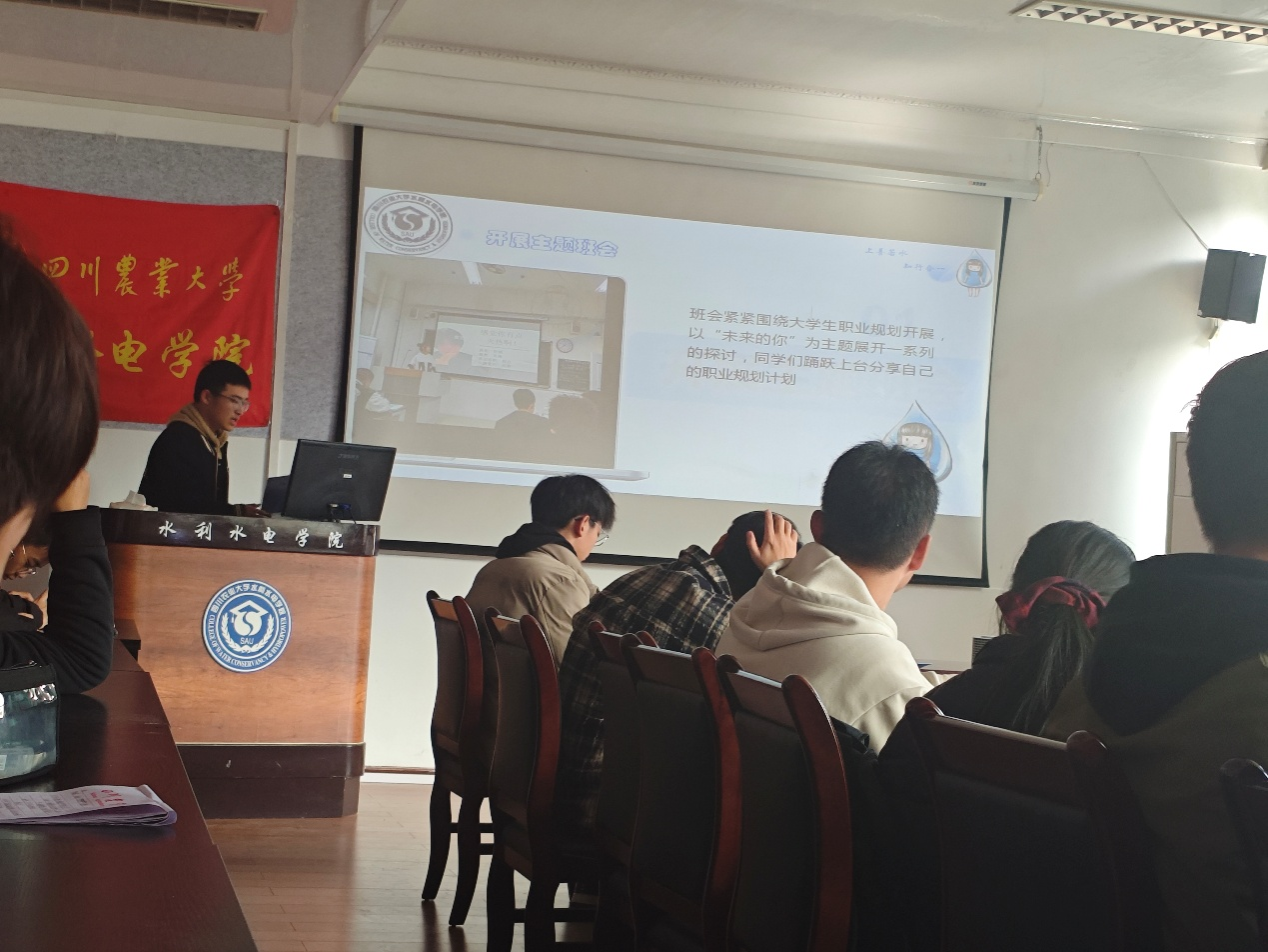 班级答辩赛采用“3+2”模式,即3 分钟的自我陈述环节和2分钟评委提问环节。在班级代表陈述环节,各位班级代表思路清晰,结合小班自开学以来各自班级的班规建设、学风建设活动、班级同学生涯规划策划情况、课外活动的开展等,通过PPT的形式向大家展示出来。评委们就答辩人班会开展情况、PPT展示内容是否紧扣生涯规划比赛主题、问题回答表述是否清晰等方面进行打分。水电 202404 班脱颖而出,斩获一等奖;能动 202403 班和水利 202403 班荣获二等奖;能动 202404 班、水电 202403 班、水利 202404 班获得三等奖。