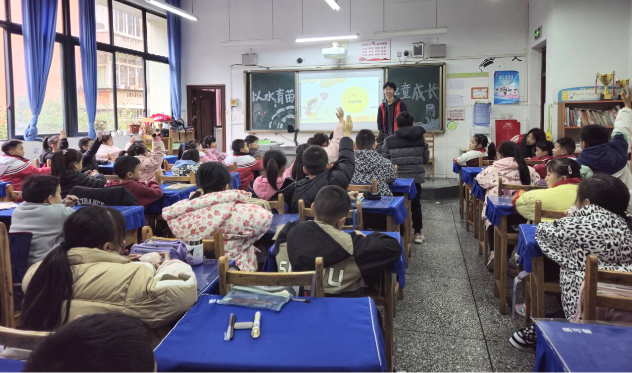 为提升小朋友保护水资源和可持续发展意识,培养其珍惜自然资源的良好习惯,学院团委志工部于11月27日组织9名志愿者前往雅安市太平实验小学,接续开展了 “以水育苗,伴童成长” 志愿活动。