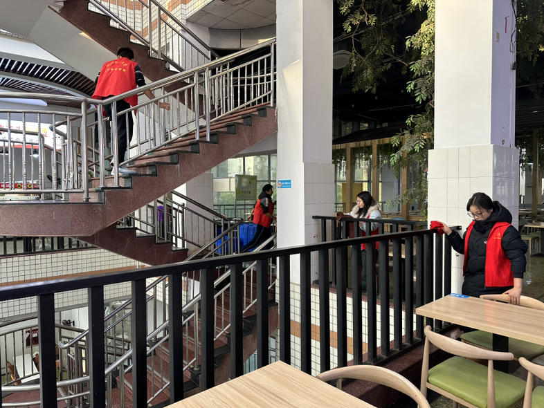 12 月 15 日,学院团委志工部在杏苑食堂组织开展了公共场所清洁专项志愿活动,八名志愿者同学积极参与志愿服务。