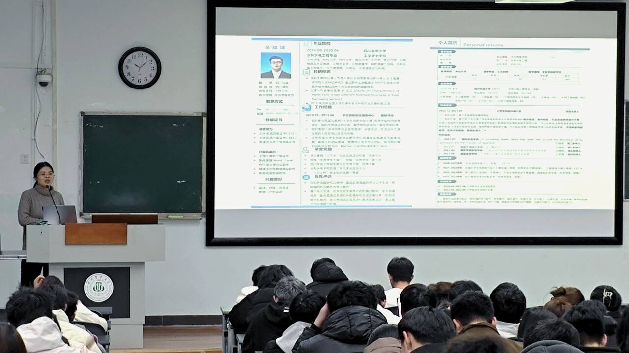 “HR平均仅用15秒筛选一份简历,85%-95%的简历因缺乏亮点被淘汰。”会上,李建华以一组数据点明简历重要性。她指出,高年级学生需聚焦“核心竞争力提炼”,将简历从信息罗列升级为“个人品牌故事”;低年级学生则应构建“成长坐标系”,通过“经验沉淀-资源获取-能力升级“的闭环实现职业”抢跑。