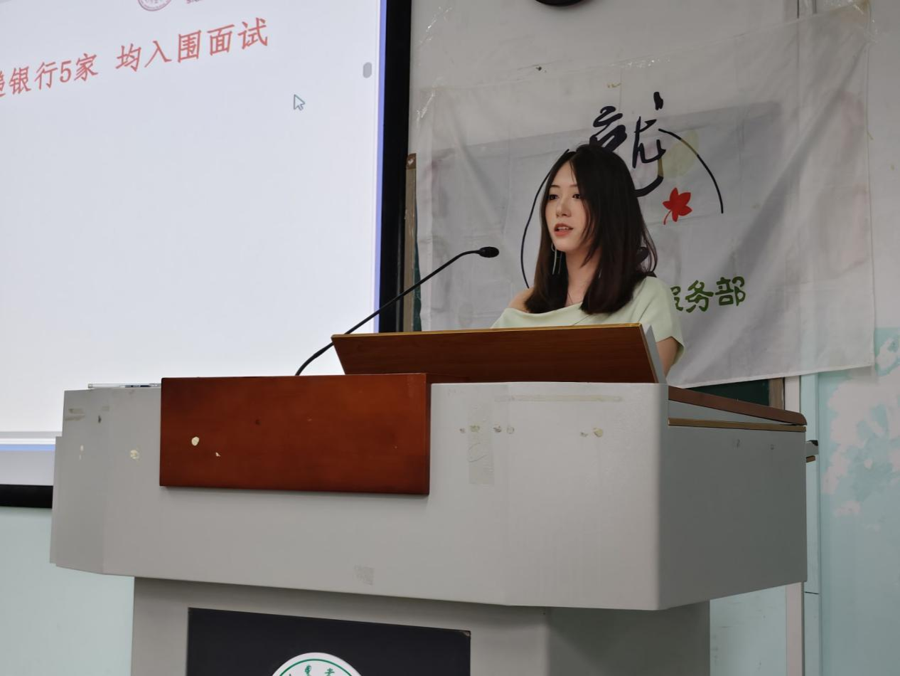 “我的大四历程,坎坷又迷茫。”学习成绩优异,学生工作经历精彩的刘伊却讲述了自己大四一学年从保研失败、求职多次碰壁、考公面试失利到跨界选择比亚迪整个过程,向同学们逐条厘清求职过程中常见的痛点。此外,她还强调:“简历投递石沉大海是常态,不要焦虑,不要自我否定。”