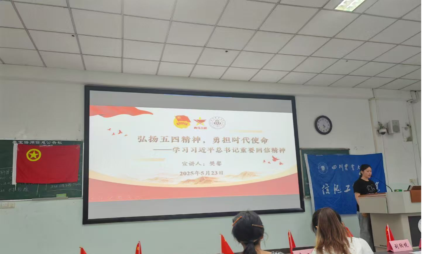 活动以“承五四薪火,悟回信精神”为开篇,为学先进,赶先进,当先进,本次班团活动由青马班成员樊馨带领学习“回信精神”专题宣讲。她结合科技兴农案例,深入解读总书记对青年 “在奋斗中绽放青春光彩”的殷切嘱托,强调青年成长应与国家发展同频共振。经由此次宣讲,深化了西部计划精神,引领广大团员“到祖国最需要的地方去”。