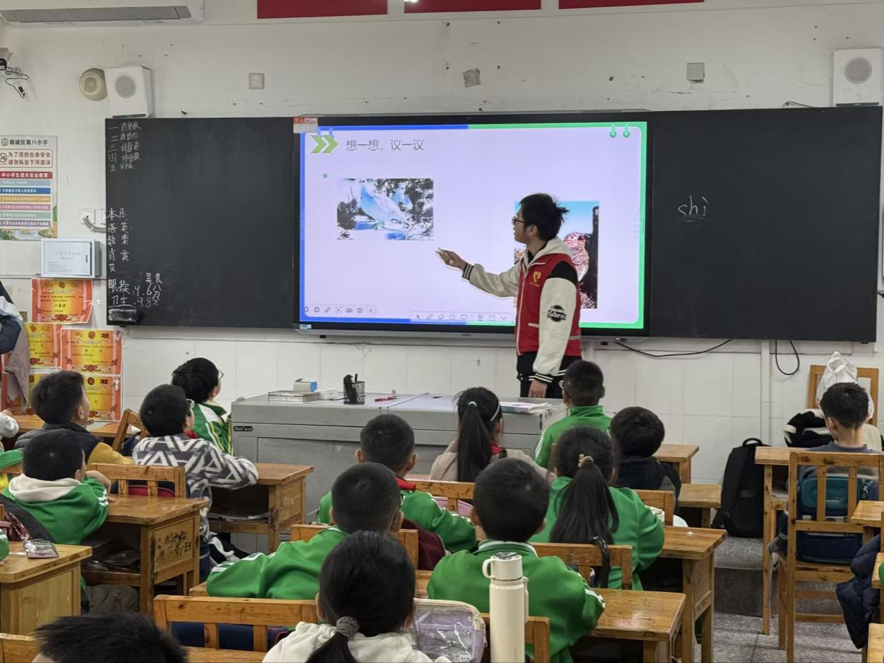 11月10日,学院9名学子在活动负责人曾志的带领下,走进雅安市第八小学开展“书香龙溪”公益活动。本次活动聚焦“生物适应环境”核心主题,主讲人覃天用通俗生动的讲解,为同学们揭开“适者生存”的自然奥秘,让科普知识扎根童心。