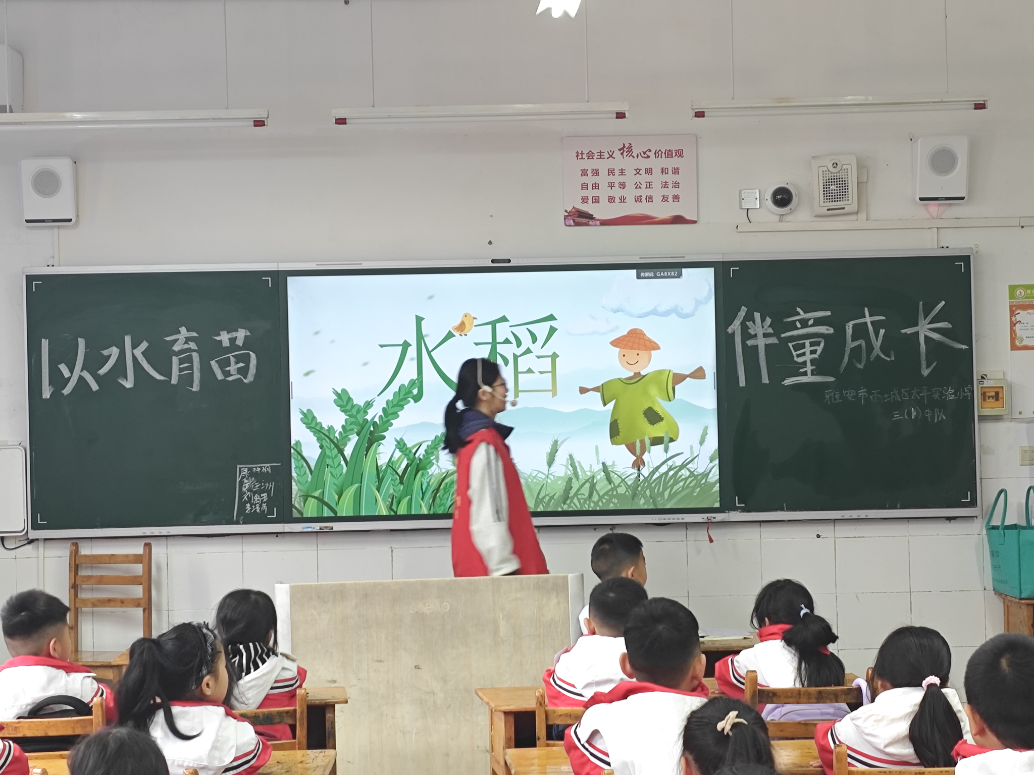 上午11点,陈清梅以“我们每天吃的米饭从哪里来?”为引,激发学生思考,随后逐步展开水稻从播种、育苗、插秧到抽穗、成熟的全过程。配合生动的动画视频与图片,学生直观地了解到水稻在不同生长阶段对水、土壤和气候的需求,认识到“水是稻的命,也是稻的病”这一农谚的深刻含义。