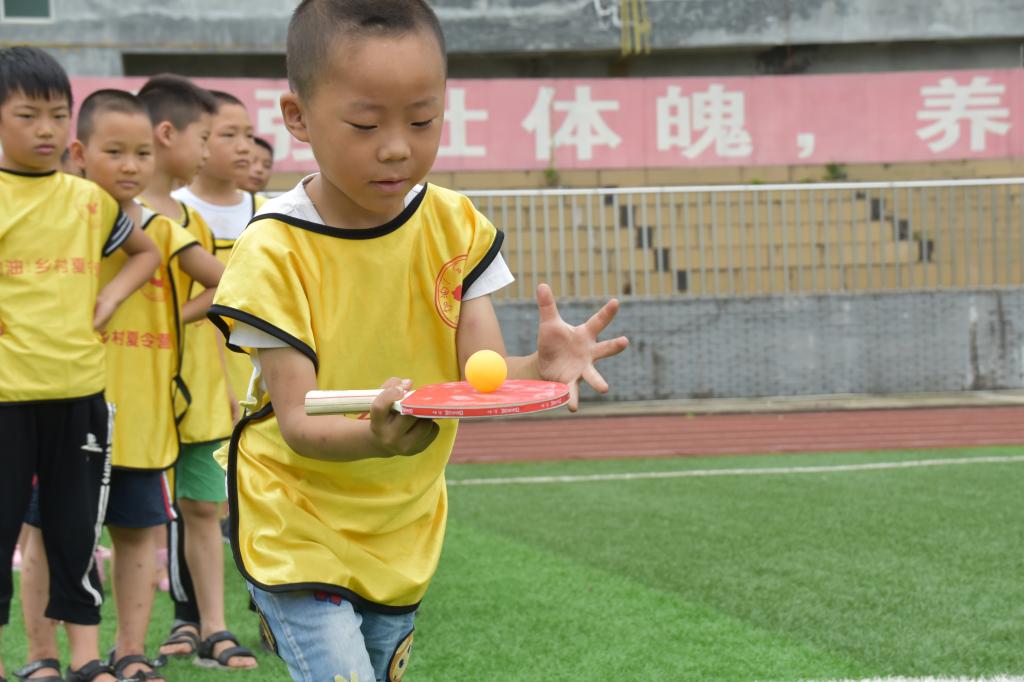 运动会主要分为四个项目螃蟹接力赛跑、托乒乓球三十米赛跑、三人四足、赶小猪,最后根据时间内个数为多者获胜。活动一开始,现场就沸腾起来。大大小齐上阵,相互鼓劲、你追我赶,加油声、鼓劲声和呐喊声一浪高过一浪,比赛营员和啦啦队营员的脸上都挂满了开心的笑容。运动会现场,大家都发挥了自己最好的运动水平,通过各自的努力取得了好成绩,志愿者团队也准备了两份奖状,胜方获“最佳活动奖”,负方获“最佳团结奖”。