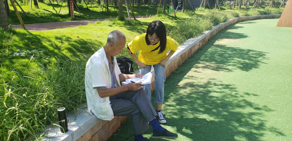 第二天,团队成员乘车来到苏母公园,进行调查问卷。成员分成四队,三人一队,对公园里、道路上的市民进行随机调研。在对不同年龄段、不同职业的人进行调查后,得出结论:市民已经开始有了一定节水、护水意识,并且想参与到保护水的行动当中,但不知该如何出力。在做问卷调查时,也适当普及有关水保护的知识,并希望他们能够教会孩子们。