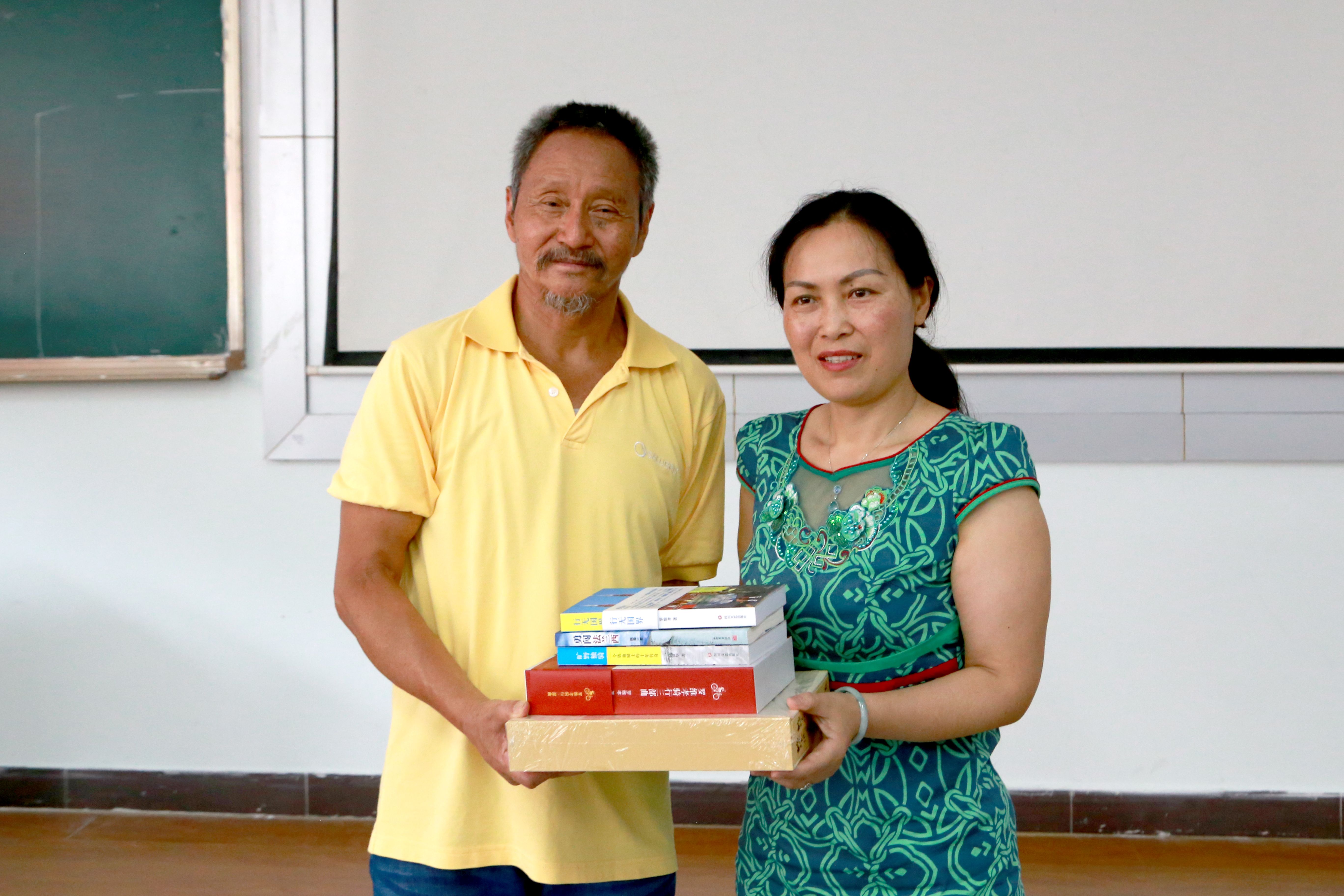 当“伟大祖国做后盾,单骑亚欧八国行”这几个大字映入志愿者们的眼帘之后,分享会便拉开了序幕。在热烈的掌声中,罗老师亲手将《罗维孝骑行三部曲》及两本画册赠送给张永红馆长,把自己的爱心与经历都交给了学校的图书馆,方便让学生领略骑行路上的风景及困难。随后,罗老师就自己“为什么要骑行”以及骑行到西藏、莫斯科和法国的经历做了一番慷慨激昂的演讲,说到激动的时刻,他把贴满邮戳的棋子拿到胸前举起,给在座志愿者们的最直观的体会。“我做了一件我最想做的事,我走了一段我最想走的路,我看了一路我最想看的景,我圆了一个我最想圆的梦!”这位年届古稀的老人,道出了自己心中最真实的想法。到达终点的兴奋,在莫斯科被当成乞丐的无奈,种种丰富的经历,无不牵动着在场每一个人的心,迎来了雷鸣般的掌声。一个人,一辆车,一段旅途。是一场冒险,也是一位老人不服输的意志体现。115天的骑行,穿越丝绸之路,打破地域限制,从骑行者到学者,中国勇士罗维孝先生将熊猫文化带出了中国。 在后面的提问环节中,针对同学问到大学生应该怎么样学习罗老师的精神时,他说,“年轻人要有信念,要有激情,不能虚度光阴,要大胆地去做自己想做的事情,还要多读书,增长自己的见识!”也有同学提问到,罗爷爷在骑行过程中是否迷茫或者想要放弃,他说:“迷茫是一定会有的,一路骑行中要面临许许多多艰难的问题,但是因为自己已经选择了这条路,所以一定会坚持下去的!”时间渐渐流逝,分享会也接近了尾声,当主持人宣布分享会到此结束时,现场观众依依不舍地离开了会场。而在志愿者们收拾完会场之后,一道闪光灯,将众人的笑容定格在了照片上。