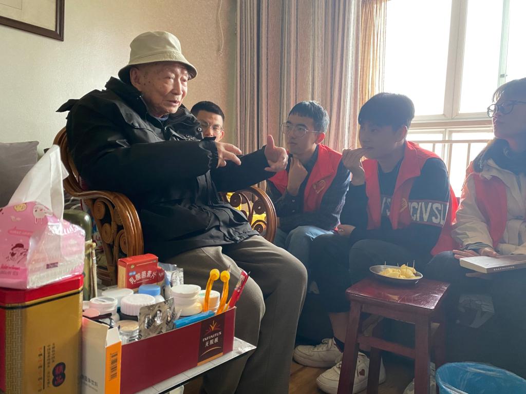 为关爱抗战老兵,弘扬红色历史文化,四川农业大学水利水电学院团委青年志愿者工作部组织了七名志愿者分别去到了陈鸿逵和杨天青两位老兵爷爷的家里共度重阳,为爷爷们带去温暖和陪伴。10月25日下午两点,志愿者们买好水果,在校门口集合后分为两支队伍分别去到两位爷爷家中送去祝福。