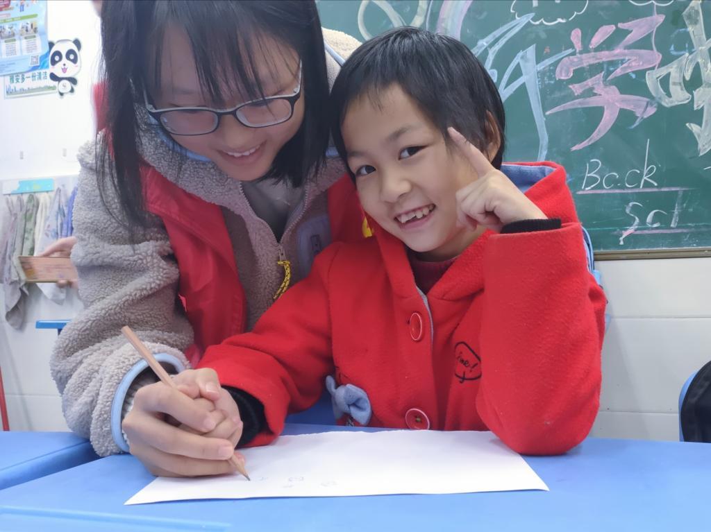 活动最后,志愿者带领孩子回顾了这节课的内容。“考考大家重阳节是几月几号?”“九月九日!”,志愿者老师提问孩子们都积极并正确得回答。“摇啊摇摇到外婆桥”课堂在一首合唱的歌谣中结束,孩子们与志愿者们拥抱说再见。这些孩子与其他孩子们并无不同,他们用简单的方式传递着最真挚的感情,拥抱志愿者与志愿者说再见传递着他们的不舍之情。志愿者们在孩子们的再见声中踏出了校门,心中期待下一次见面。