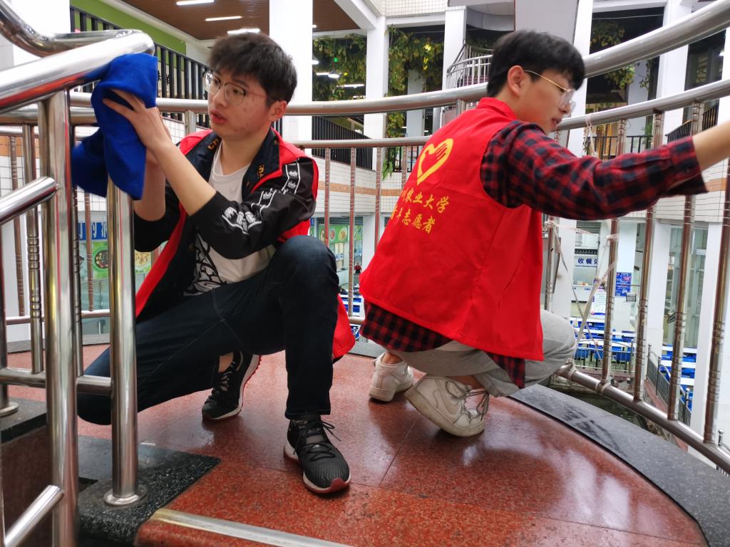 为了帮助食堂叔叔阿姨减轻工作负担,为了给同学们营造一个良好的学习生活环境,2021年3月26日四川农业大学水利水电学院的志愿者们分为三个小队,分别开展了食堂帮忙、教师擦除、摆放共享单车三项活动。