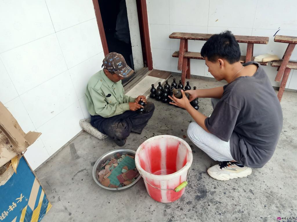 队员和吉伍五且和他的徒弟了解漆器发展现状 通讯员 加多木甲 供图
