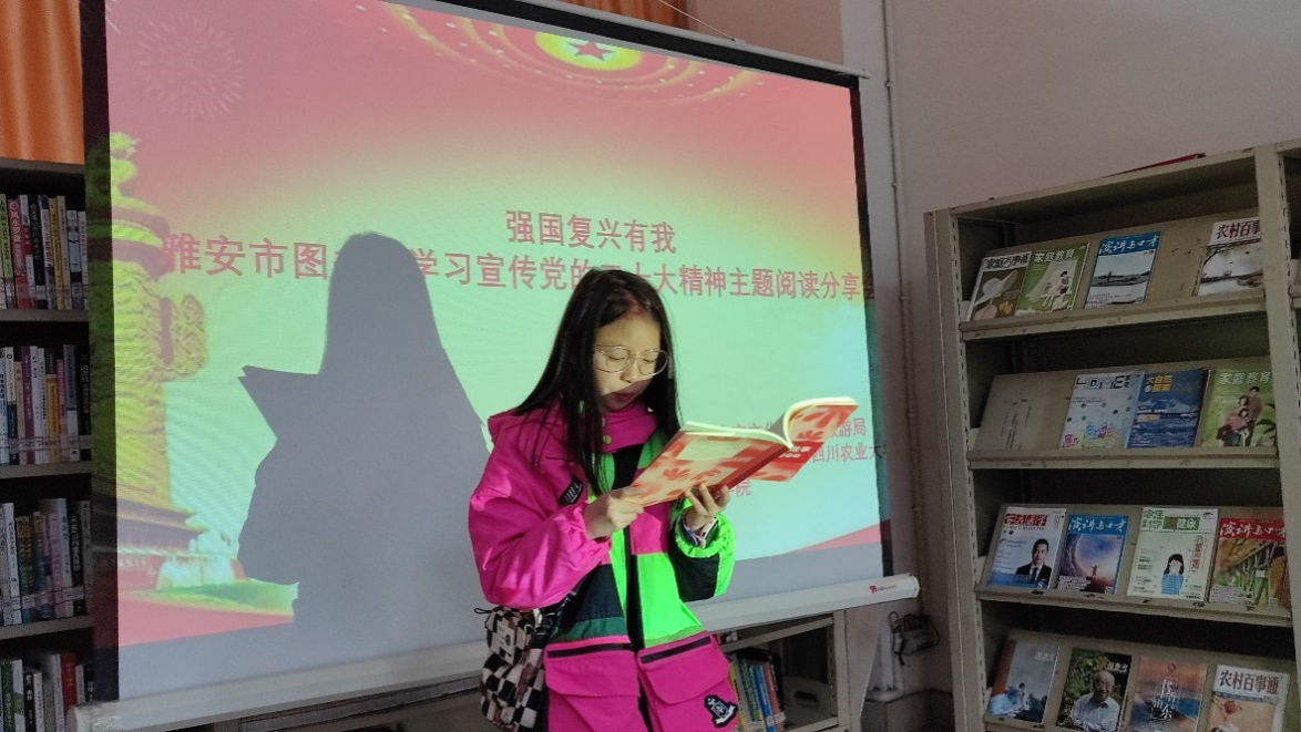 3月11日,在党的二十大闭幕之际,为弘扬党的二十大精神,提升青少年的爱国精神,以及培养青少年勤阅读的优良习惯,学院团委青年志愿者工作部组织了5名志愿者前往雅安市图书馆开展“爱阅读会生活”主题活动。