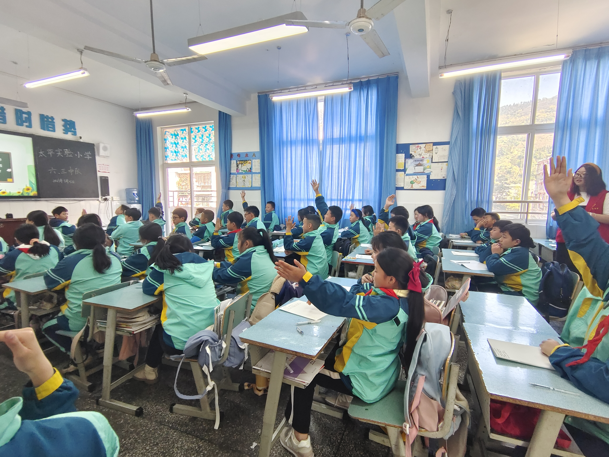 下午14:00时,志愿者们到达太平实验小学,此时正值春季,校园里充满了生机。站在六年级三班的教室外,志愿者们便开始为宣讲做准备,穿上志愿服,拿出为小朋友们准备的糖果,等待小朋友们进入教室。随着上课铃声的响起,志愿者走上讲台,其他的志愿者各司其职,正式开始了此次的宣讲。