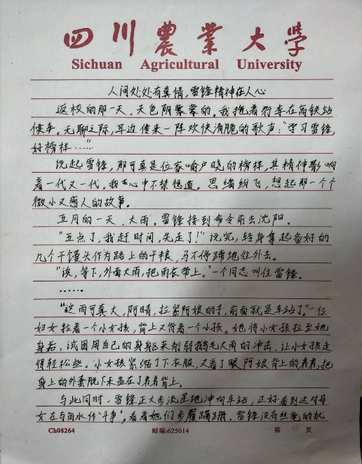 在评选过程中,志愿者们本着认真负责的态度,对每一篇文章都进行了仔细的阅读和评估。他们从主题内容、文字表达、情感体现等多个方面进行综合考量,力求评选出最优秀的作品。最终,能动202203班唐思恺同学的《人间处处有真情 雷锋精神在人心》荣获此次征文比赛一等奖,另有五位同学分获二三等奖,它们代表了同学们对雷锋精神的理解和传承,也展现了他们对美好生活的向往和追求。