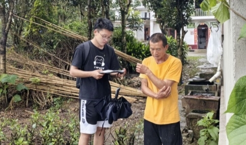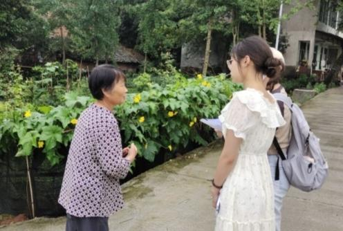 (图为团队成员向大堂村村民询问近年的旱涝情况)