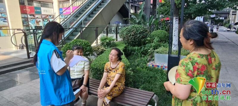 图为团队成员对社区居民进行采访。秦溪 供图