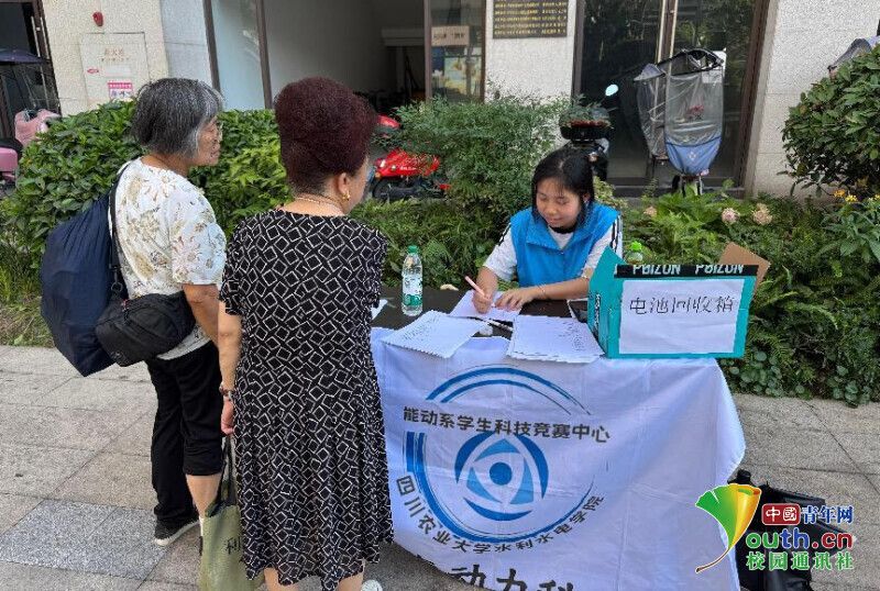7月18日,在四川省雅安市雨城区康藏路社区,四川农业大学水利水电学院能源再循团队开展了为期15天的“电池归位,能源再循”废旧电池回收活动。7月的雅安雨城区骄阳似火,康藏路社区广场上却比天气更火热——四川农业大学能源再循团队的“废旧电池回收点”前,居民们提着攒了许久的电池排起长队,志愿者秦溪正蹲下身,用卡通贴纸向小朋友演示“一节电池能污染600吨水”。