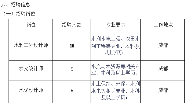 1.水利水电工程、农田水利工程等专业,本科及以上学历;