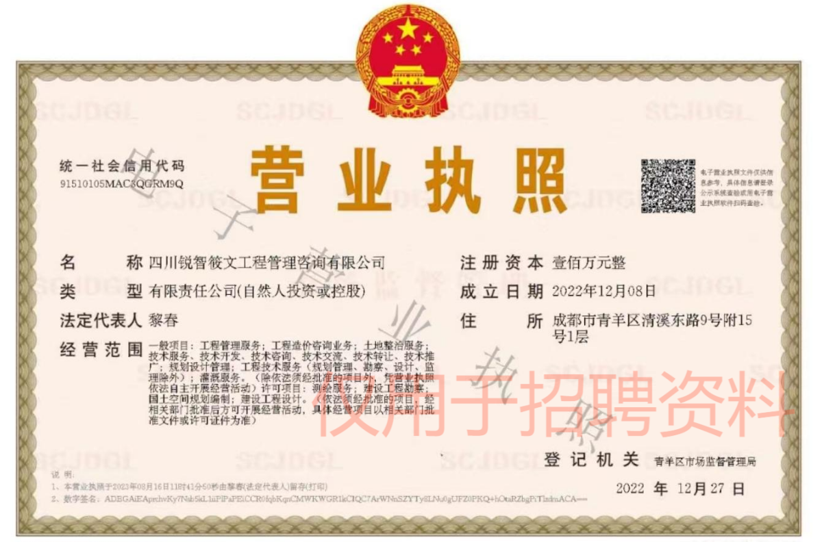 本公司成立于2022年12月8日,目前公司主要业务方向:工程造价,高标准农田规划设计,土地整治项目可行性研究,实施方案的编制,土地资源管理等。现拟招聘实习生,相关情况如下。